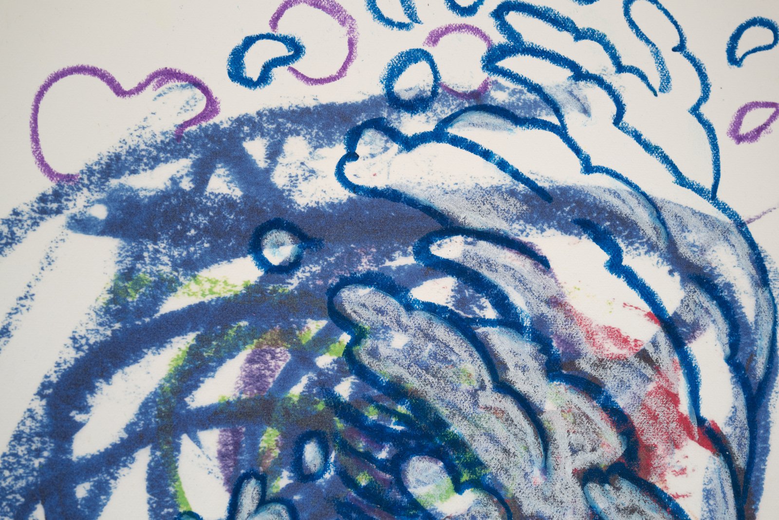 Oil Pastel and Pigment Print on Paper, Tempera Stick on Tea Paper, 11 x 14 inches