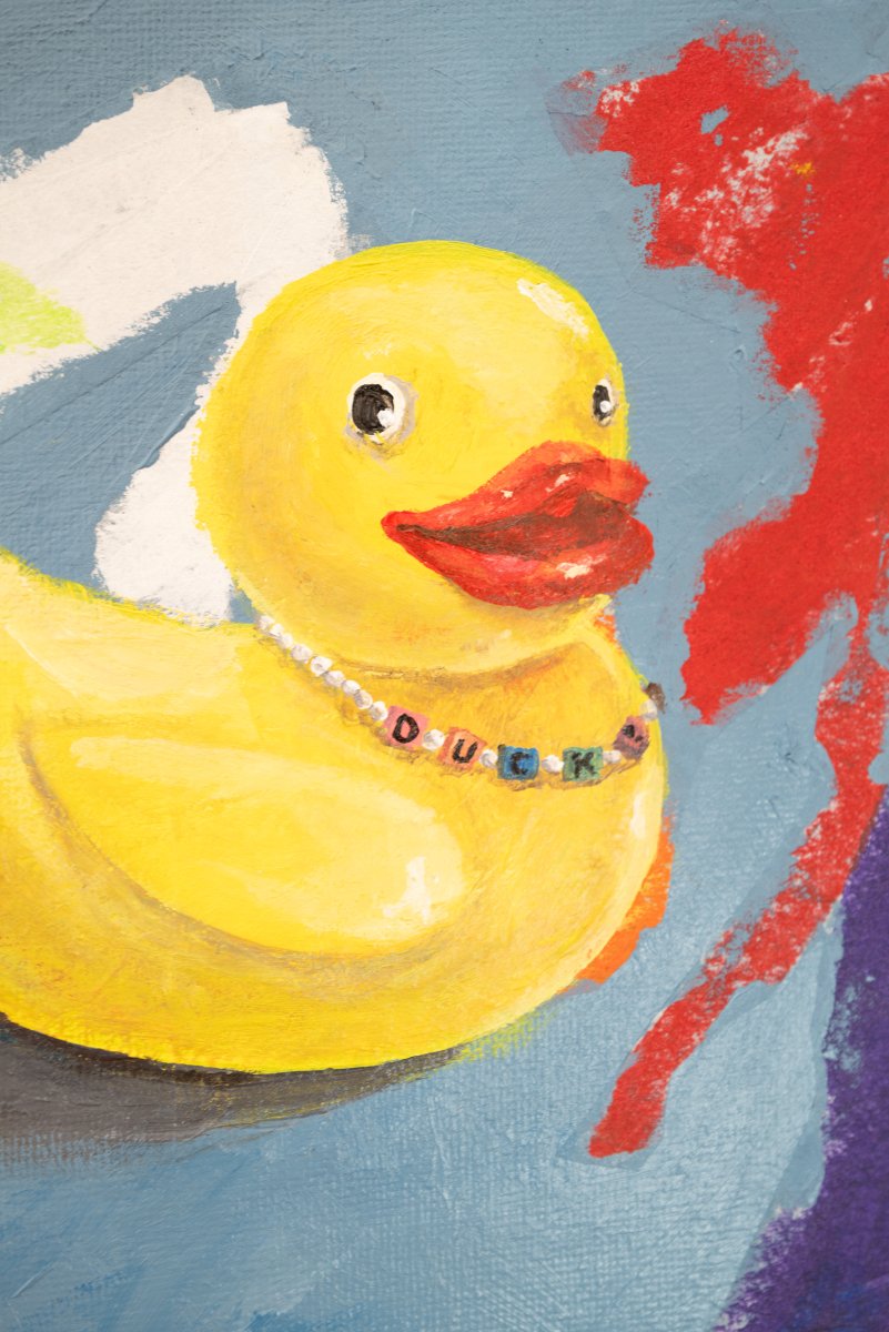 Oh Shoot!, Acrylic on Canvas, Tempera Stick on Tea Paper, 8 x 10 inches