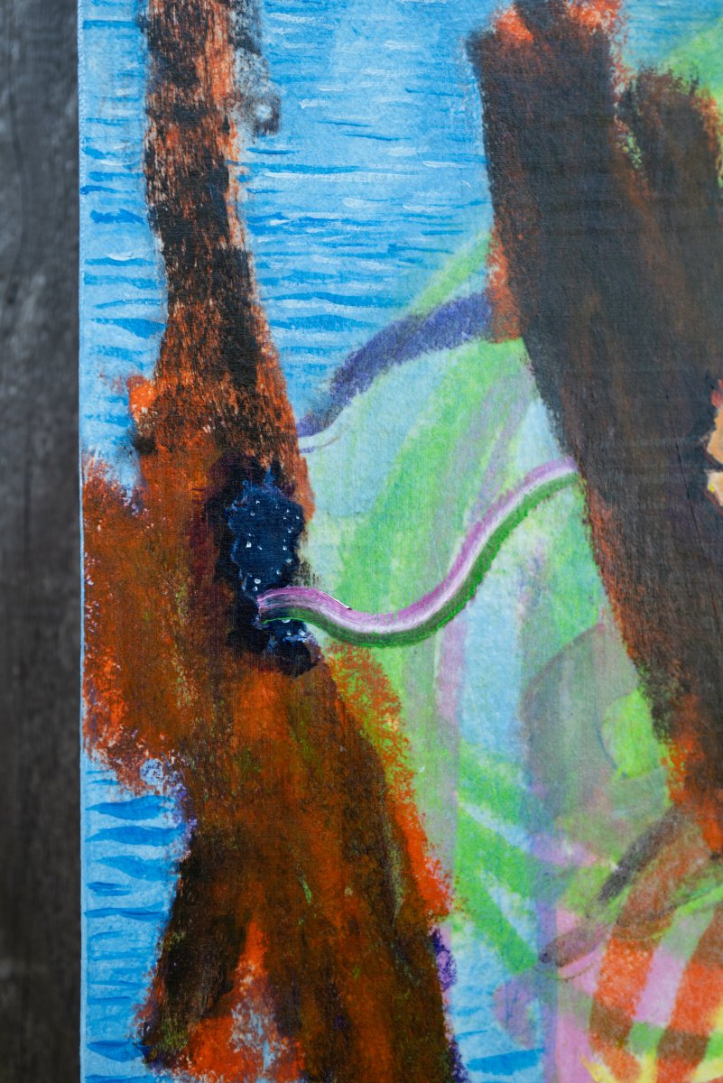 Ryan Martin lives and works in the San Francisco Bay Area where he attended the California College of the Arts. Through painting and drawing, Martin creates surreal, dream-like compositions of his subjects. He is influenced by his roots, growing up in Southern California during the 80โs & 90โs, where his pluck choices of hues dominate his artwork. Martinโs portraits are loosely haloed by floral and fauna; these haloes embody his Native American (Mexican/Seri Tribe) roots, taking the place of warbonnets which are attributed to males and masculinity during Native American rituals. The ring of botanical designs also reference Martinโs Russian heritage, through a reinterpretation of kokoshniks, which are solely attributed to the feminine. Several portraits depict their subjects conflicted within their makeup, in high contrast, between light and dark, and contrasting color. Martinโs latest work intertwines memories of fish-keeping as a child and the textiles of his heritage which he attempts to reconnect with. Martinโs artworks also include observation through photography, video and investigations of texture through installation work. Martin’s artwork has been highlighted by numerous media including The Advocate, Chic Today Magazine, Creative Boom and The Art Man. He has exhibited widely across the United States, including the deYoung Museum in San Francisco, Context, Scope & Untitled in Miami, and selected for Volta NY 2014. His exhibits include three solo shows at Mark Wolfe Contemporary Art in San Francisco and two solo shows at Elizabeth Houston NYC.